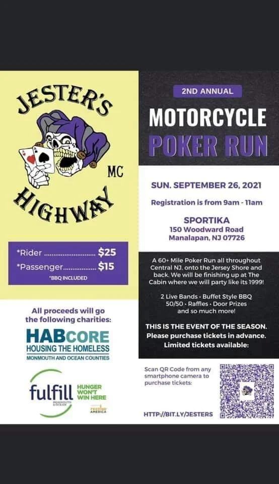Jesters Highway 2nd Annual Poker Run to the NJ Shore Benefiting Habcore Homeless Services @ Habcore.org & @FulFill Food Bank Fulfill.org.